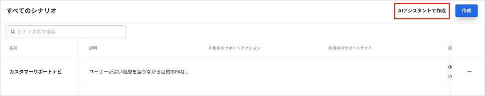 • 右上に「AIアシスタントで作成」ボタンがあります